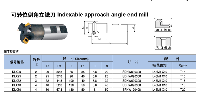 可轉位倒角立銑刀說(shuō)明: