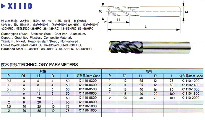 整體硬質(zhì)合金2、4刃R角銑刀說(shuō)明: