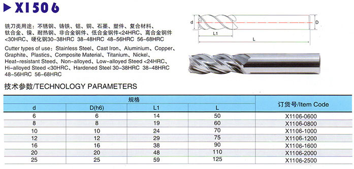 整體硬質(zhì)合金四刃不等螺旋直柄立銑刀說(shuō)明: