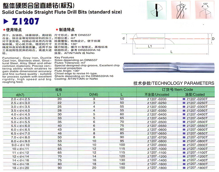 整體硬質(zhì)合金直槽鉆(標刃)說(shuō)明: